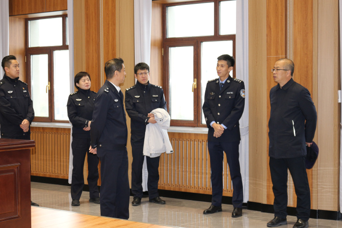 为深入推进“脱薄创优”专项工作走深走实,全面提升司法警务保障专业化、规范化、实战化水平,筑牢审判执行工作安全屏障,10月27日,省高院法警总队一级调研员杨冶带队深入铁力市人民法院开展司法警务工作专项调研指导。铁力市人民法院党组书记、院长刘治鹏陪同调研。