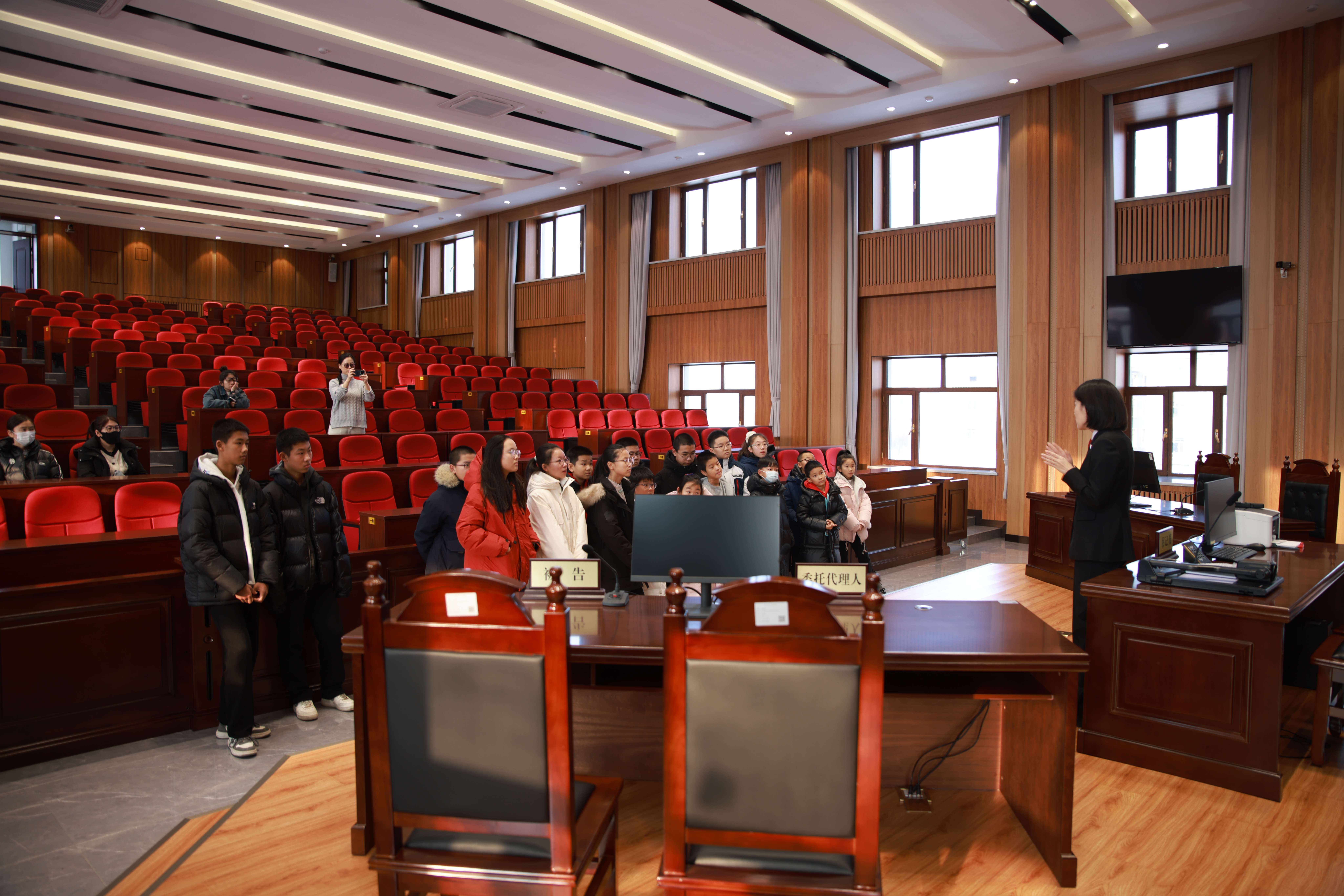 紧接着,大家依次参观大中小民事审判庭、刑事审判庭。在讲解员张佳惠的指引下,孩子们端详着庄严肃穆的审判席、闪烁的法徽,聆听不同审判庭的职能差异,直观感受到司法审判的严谨与规范。