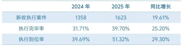 2025年,铁力市人民法院执行局全年新收案件1623件,旧存24件,结案1615件,执结率达98.06%。执行完毕率、执行到位率等重点指标均呈增长态势,持续推进“雷霆2025”“雪暴行动”等专项执行行动,全年实施司法拘留12人次。